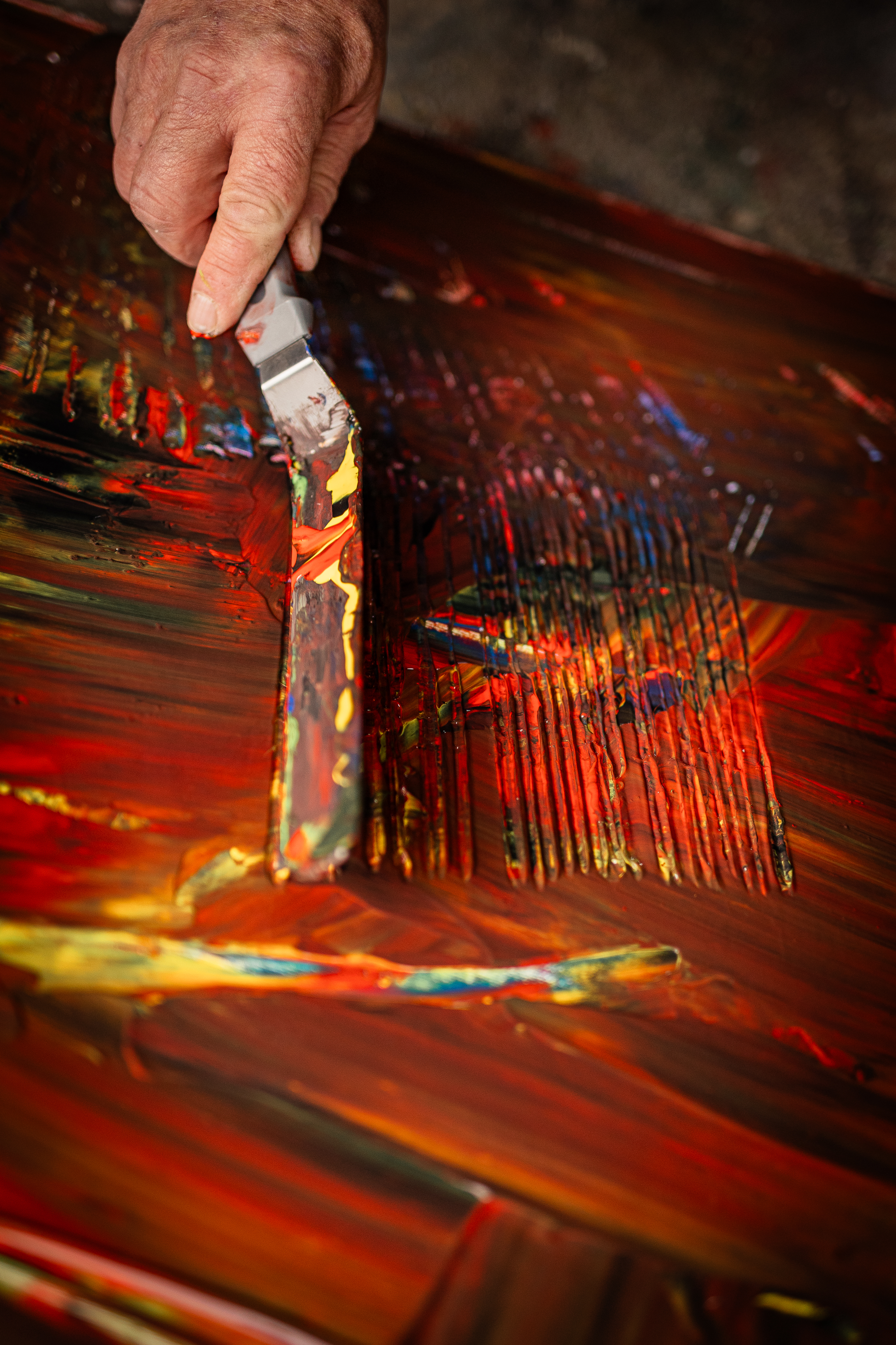 Abstrakte, expressive Malerei an der Grenze zwischen Intuition und innerer Vorstellungskraft. Mutig, kompromisslos, wild - die Großzügigkeit der Farben, Schicht für Schicht eine Erfahrung, eine Frage, eine Sehnsucht.